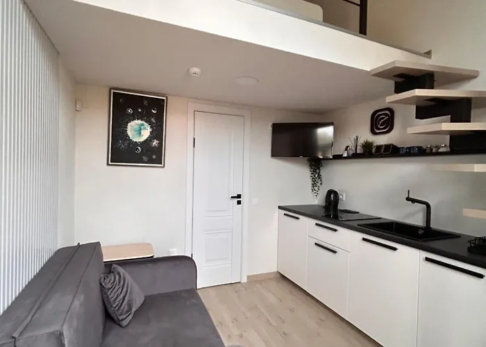 Ces propriétés Appartement Urban Nest Palanga propose des installations indépendantes pratiques, notamment une cuisine équipée avec une bouilloire électrique, un réfrigérateur et une table de cuisson. L'arrêt de bus Pirtis se trouve à 200 mètres.